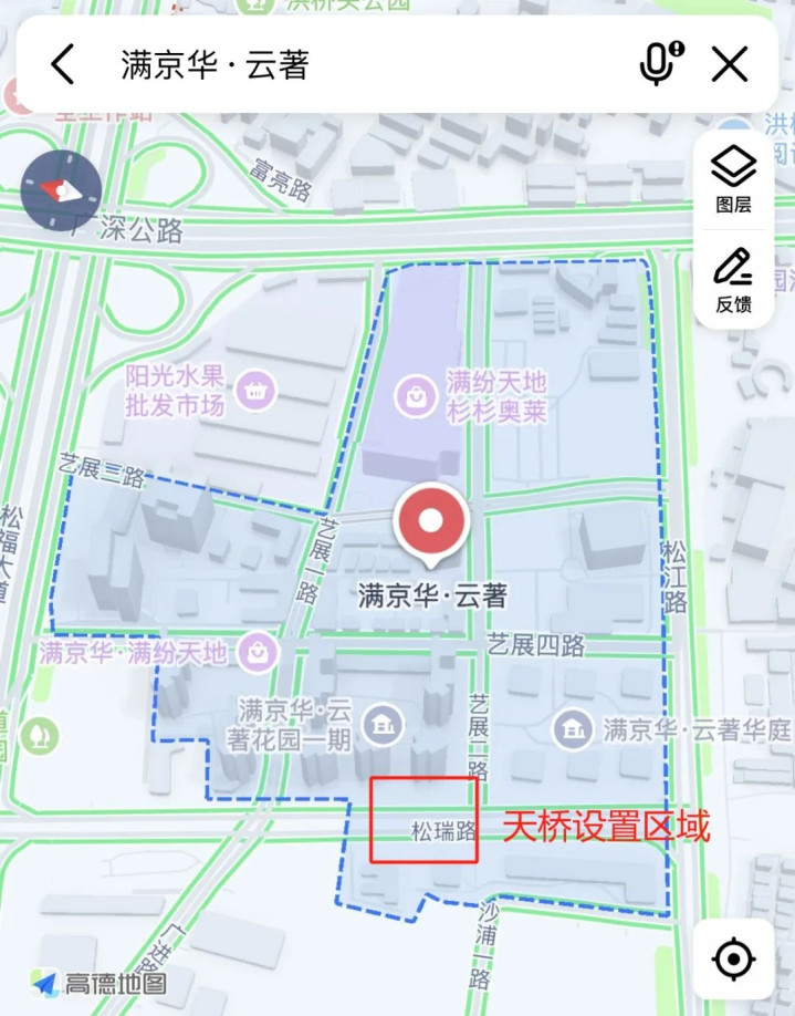 该市民在留言中还指出了松瑞路天桥建设的必要性存疑,据其反映,天桥选址区域周边50米范围内已有路口可供通行,此外,天桥正对居民楼的设置更因占用公共空间而引发了两边居民的不满。